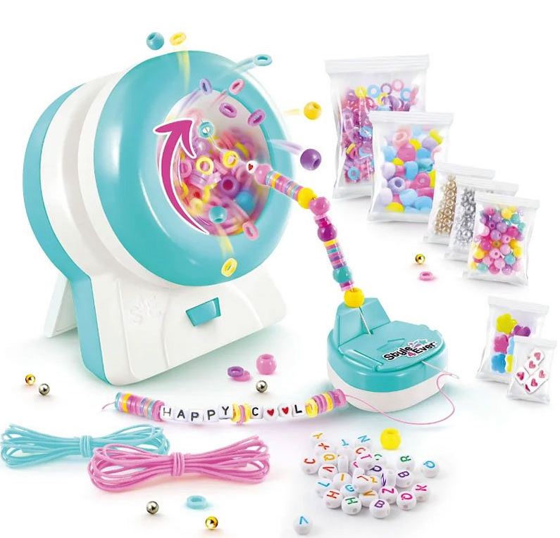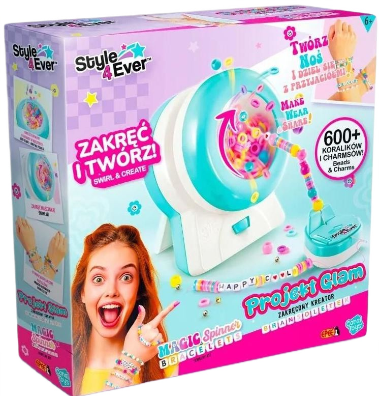 Gotowa na wyrażenie swojej kreatywności? Zestaw do tworzenia bransoletek to idealne narzędzie, dzięki któremu możesz stworzyć unikatową biżuterie. Jest to genialny zestaw, który zmienia żmudne tworzenie biżuterii w czystą frajdę! Wsyp koraliki, uruchom urządzenie i patrz, jak samo nawleka je na sznurek, tworząc efektowne, kolorowe kompozycje. Chcesz dodać imię, hasło lub specjalną wiadomość dla przyjaciółki? Wystarczy zatrzymać maszynkę, ręcznie nawlec koraliki z literkami i… wrócić do zakręconej zabawy!