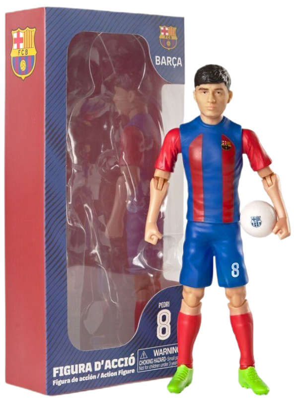 Figurki od marki Banbo Toys będące oficjalną repliką światowej sławy piłkarzy największych kubów na świecie, to nie lada gratka dla wszystkich kibiców piłki nożnej! Figurka wschodzącej gwiazdy FC Barcelony przedstawia Pedriego w kultowym klubowym stroju z nr 8 na koszulce. Figurka mierzy 20 cm wysokości, bardzo dokładnie oddaje wygląd zawodnika, posiada wiele punktów artykulacji, dzięki czemu można ją ustawiać w różnych pozycjach. Uzupełnieniem zestawu jest piłka z herbem klubu. Całość zamknięta jest eleganckim pudełku z okienkiem.