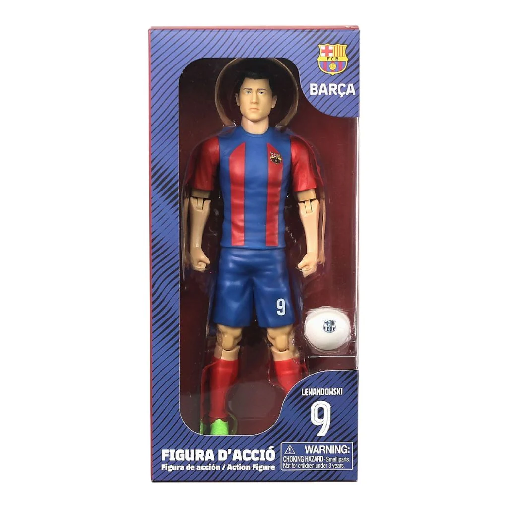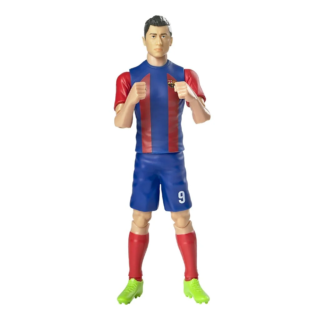 Figurki od marki Banbo Toys będące oficjalną repliką światowej sławy piłkarzy największych kubów na świecie, to nie lada gratka dla wszystkich kibiców piłki nożnej! Figurka napastnika FC Barcelony przedstawia Roberta Lewandowskiego w kultowym klubowym stroju z nr 9 na koszulce. Figurka mierzy 20 cm wysokości, bardzo dokładnie oddaje wygląd zawodnika, posiada wiele punktów artykulacji, dzięki czemu można ją ustawiać w różnych pozycjach. Uzupełnieniem zestawu jest piłka z herbem klubu. Całość zamknięta jest eleganckim pudełku z okienkiem.