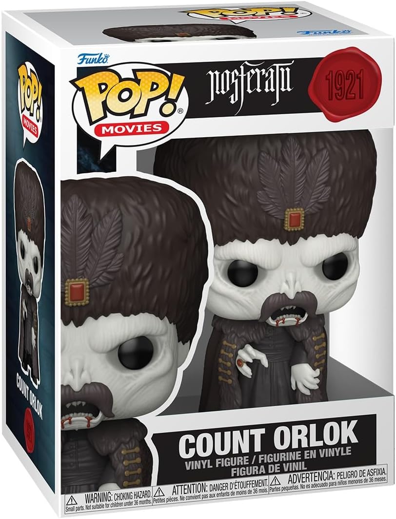W pojemniku z transparentnym okienkiem znajduje się figurka Count Orlok - postać znaną z serii Nosferatu! Zabawka została świetnie odwzorowana i z pewnością spodoba się każdemu miłośnikowi Funko POP, ze względu na liczne detale, wyraziste kolory oraz "urokliwy" charakter.