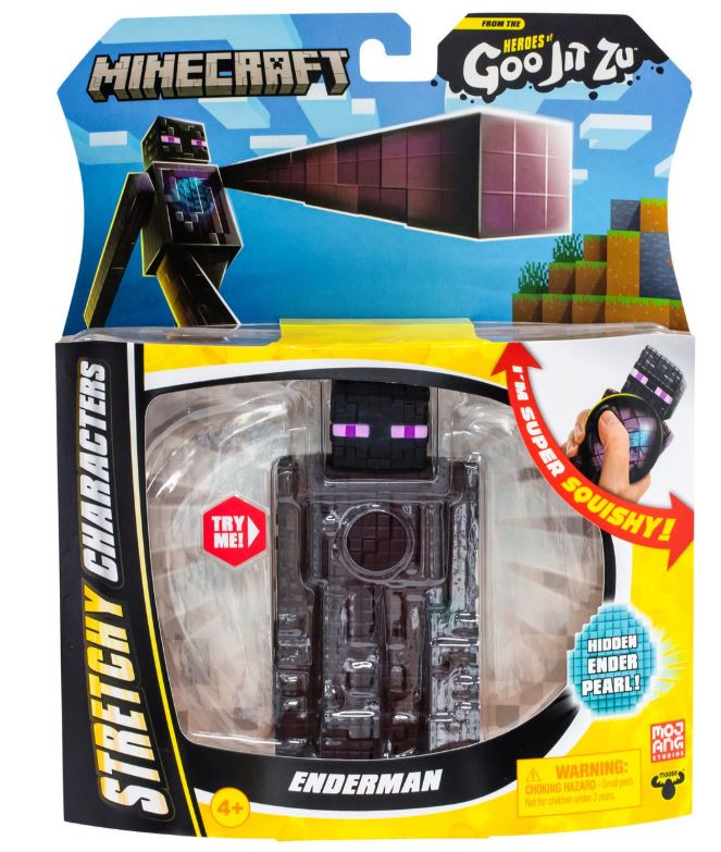 Rozciągliwa figurka z serii Heroes of Goo Jit Zuprzedstawia Endermana - neutralnego moba, pojawiającego się we wszystkich wymiarach. Zazwyczaj stawał się agresywny dopiero po bezpośrednim kontakcie wzrokowym. Figurka wykonana została z charakterystycznego materiału, jaki sprawia, że da się ją rozciągnąć do granic możliwości! Po skończonej zabawie, Enderman powróci do swojego pierwotnego rozmiaru i kształtu.