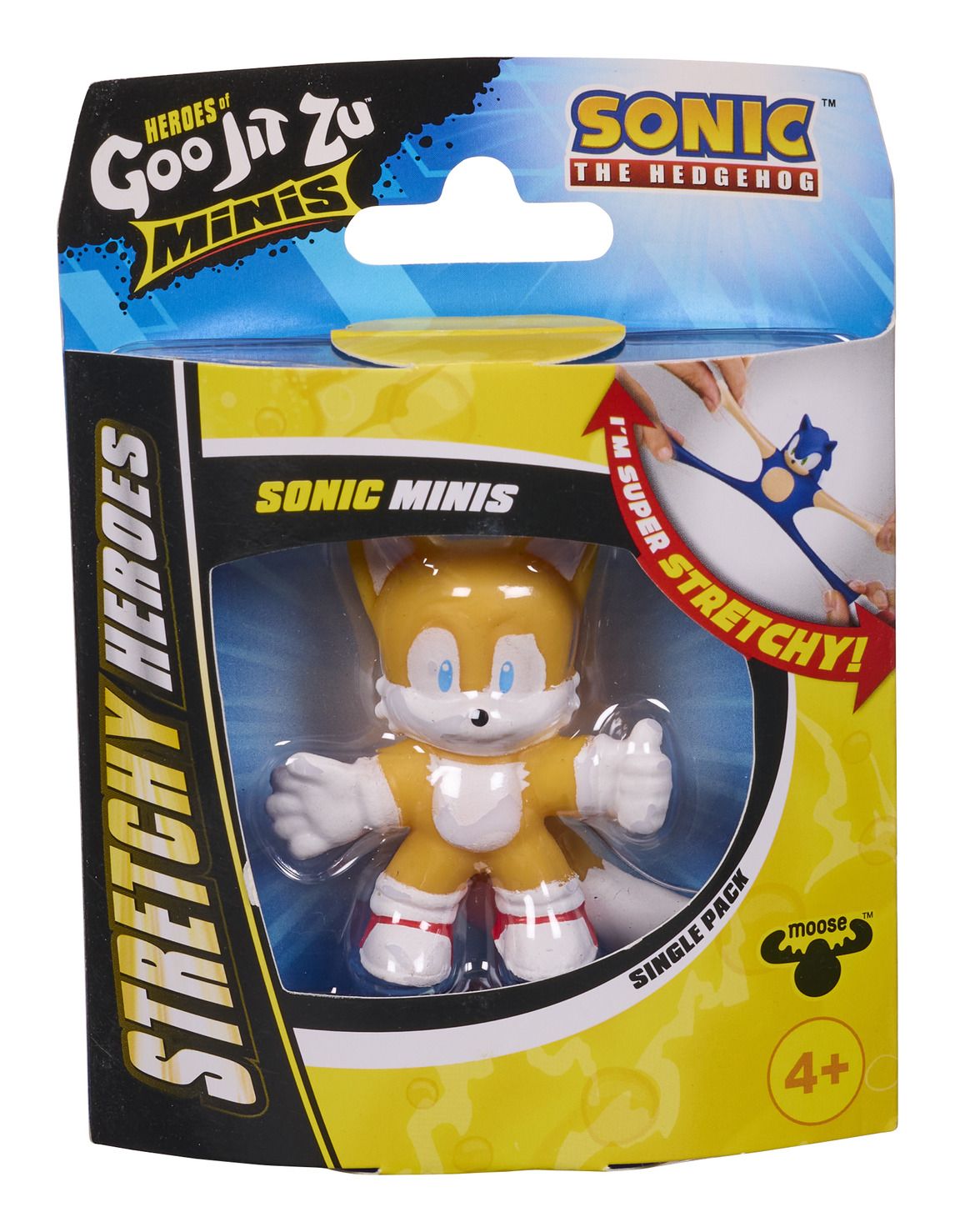 Rozciągliwa figurka z serii Heroes of Goo Jit Zu Minis przedstawia Tailsa, a jej cechą charakterystyczną jest możliwość zgniatania i rozciągania w dowolny sposób, ponieważ figurka zawsze wróci do swojego pierwotnego kształtu. Figurka ma żelowe wypełnienie, które uwydatnia się podczas zabawy.