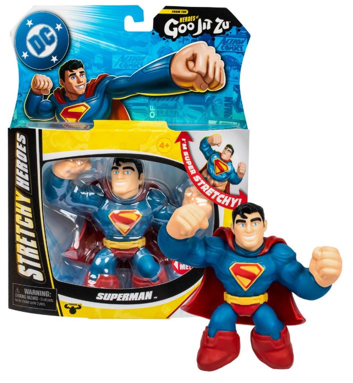 Rozciągliwa figurka z serii Heroes of Goo Jit Zu przedstawia Superman - głównego bohatera serii. Postać jest ubrana w charakterystyczny stój w czerwono- niebieskim kolorze z żółtymi elementami. Figurkę można rozciągnąć do rozmiarów aż trzykrotnie większych. Superman ma wypełnienie z wodnych kuleczek, które uwydatniają się podczas zabawy. Dodatkowo ściskając rdzeń figurki kolor wypełnienia zmieni się, co z pewnością urozmaici zabawę ulubionym bohaterem.