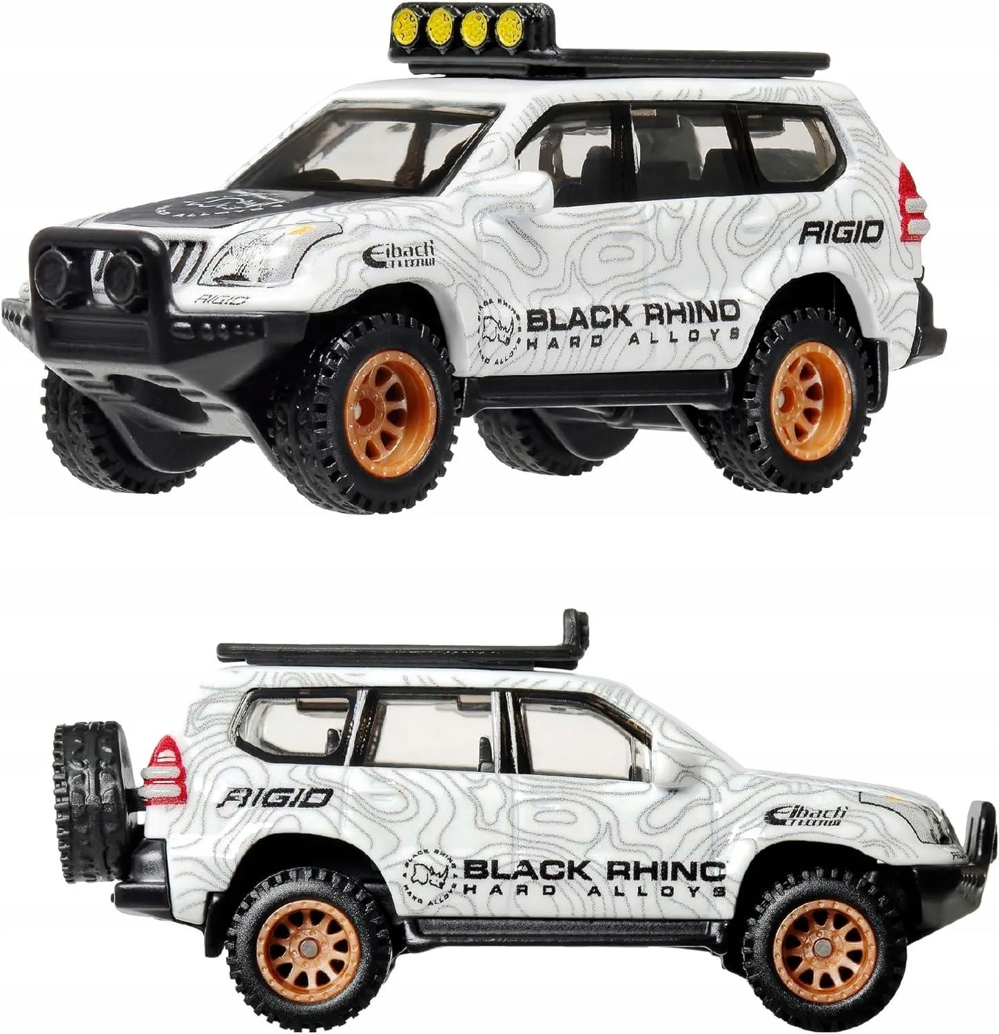 Zestaw Hot Wheels przedstawia samochód Toyota Land Cruiser Pardo oraz Mercedes Benz, z ozdobnymi grafikami. Autka są wykonane z metalu - wszystkie szczegóły jego wyglądu zostały idealnie dopracowane.