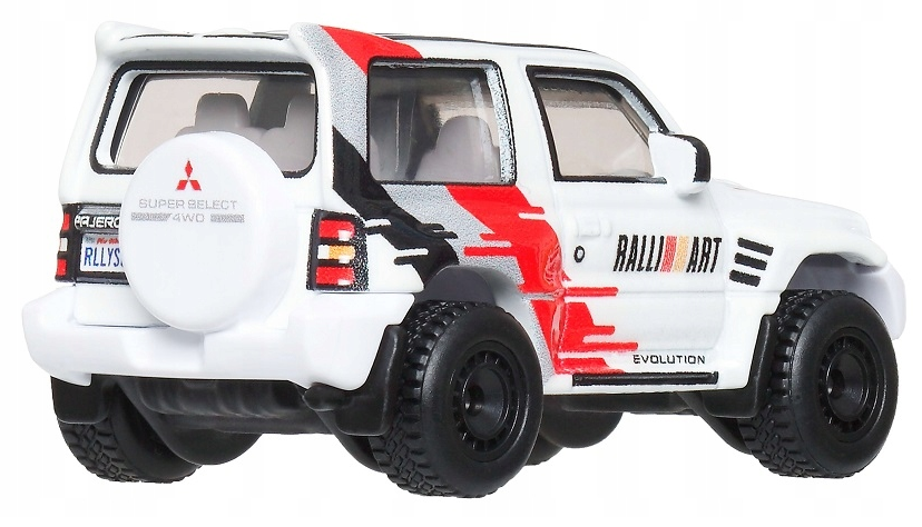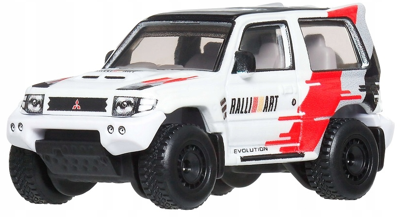 Metalowy samochodzik, stanowiący wierną replikę pojazdu Mitsubishi Pajero Evolution z linii Hot Wheels Boulevard.