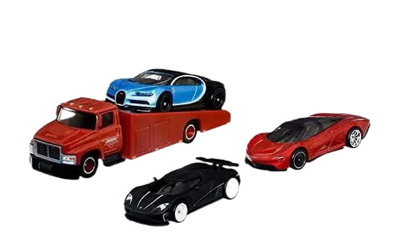 Zestaw pojazdów Nissan dla prawdziwego miłośnika japońskiego koncernu. Opakowanie Hot Wheels Premium skrywa 4 pojazdy - jeden transporter oraz 3 modele: '16 Bugatti Chiron, Koenigsegg Agera R oraz McLaren Speedtail. Resoraki przedstawiają z zachowaniem detalów, które z pewnością staną się idealną propozycją dla każdego kolekcjonera i miłośnika samochodzików Hot Wheels. Załaduj wybrane autko na lawetę i wyruszaj w drogę!