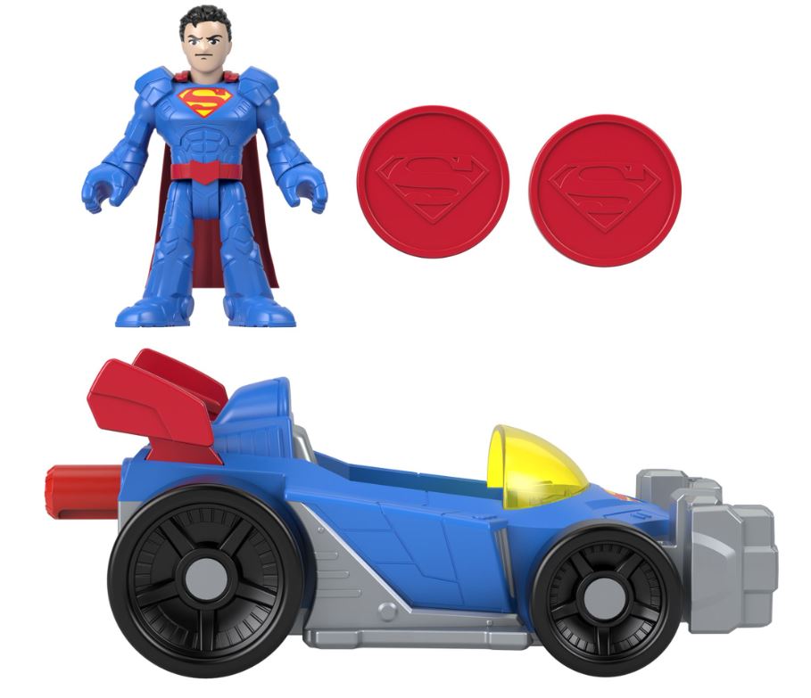 Zestaw Superman DC Super Friends pozwala przenieść zabawę na zupełnie nowy poziom. Kiedy złoczyńcy zaczynają siać spustoszenie w Metropolis, Człowiek ze Stali wkracza do akcji w Supermobilu. Dzieci mogą umieścić figurkę Supermana w kokpicie supermobila, a następnie użyć przycisku, który aktywuje pociski. Figurka ma 7,5 cm i Superman ma niebieską zbroję z czerwoną peleryną. Do zestawu zostały dołączone dwa czerwone pociski, dzięki którym każda akcja ratunkowa zakończy się sukcesem.