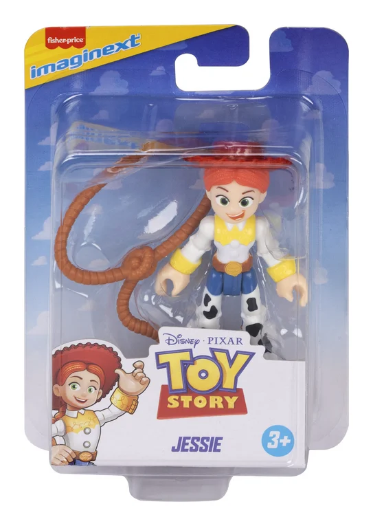 Jessie to jedna z bohaterek serii Toy Story, która pojawiła się w drugiej części filmu. Jest zabawką w postaci szmacianej lalki, która nad wyraz ceni sobie przyjaciół i zawsze pomaga innym. Najnowsza figurka marki Imaginext przedstawia Jessie z zachowaniem wszystkich cech wyglądu - ma białe spodnie, białą koszulę, kamizelkę w łatki, brązowe kozaki i kowbojski kapelusz. Jessie w tej wersji mierzy ok. 7,5 cm, jednak dzięki ruchomym kończynom można manewrować jego pozycją podczas odgrywania scenek. W opakowaniu znajduje się również lasso.