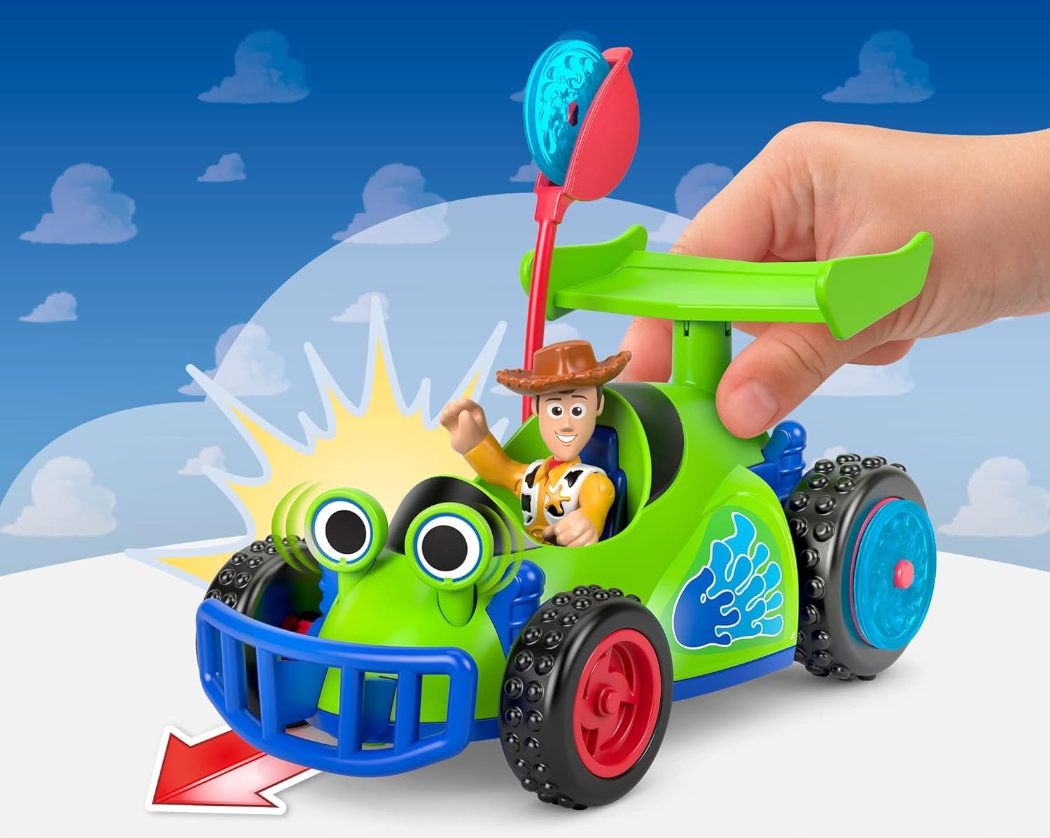 Chudy to dzielny kowboj, który pojawi się w kolejnej odsłonie przygód zabawek Andy'ego. W najnowszej wersji marki Imaginext figurka Chudego porusza się wyspecjalizowanym pojazdem z dużymi kołami, wysokim zawieszeniem i wyrzutnią pocisków! Na tylnych felgach kółek można zamontować zapasowe pociski, by później wystrzelić je w zupełnie dowolnym momencie. Figurka dokładnie odzwierciedla wygląd Chudego - ma niebieskie spodnie, żółtą koszulę, kamizelkę z łatkami, brązowe buty i kapelusz kowbojski. Pojazd jest zielono-niebieskiego koloru, a podczas jazdy po twardej nawierzchni ruszają się również oczy autka.