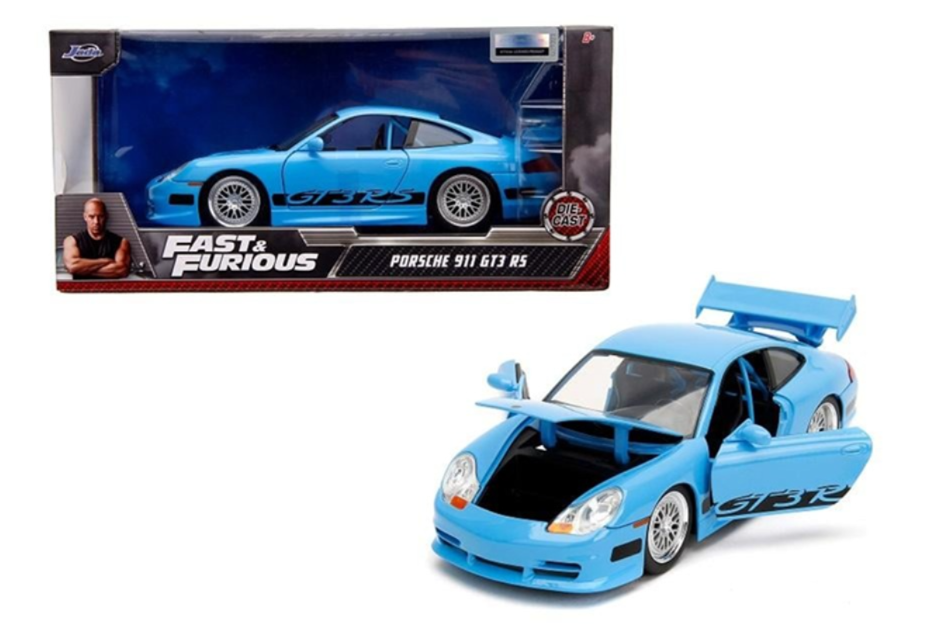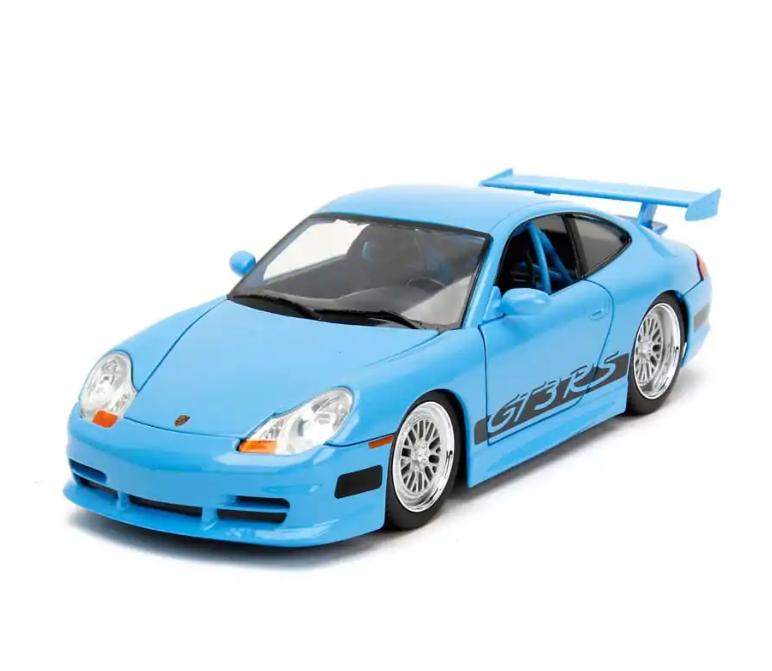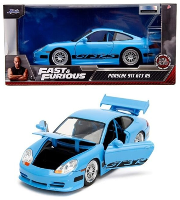 Model fantastycznego pojazdu marki Jada przedstawia Porsche 911 GT3 RS w niebieskim, intensywnym kolorze. Pojazd znany jest oczywiście z serii Fast & Furious i stanowi nie lada gratkę dla wszystkich pasjonatów motoryzacji. Auto wykonano metodą odlewu ciśnieniowego z dbałością o szczegóły, w większości wykonane jest z metalu, w skali 1:24; ma otwierane drzwi, bagażnik oraz maskę, dodatkowo ma skrętne koła co stanowi dodatkową atrakcję i pozwala podziwiać idealnie dopracowane wnętrze pojazdu. Wewnątrz znajduje się nawet niebieska klatka.