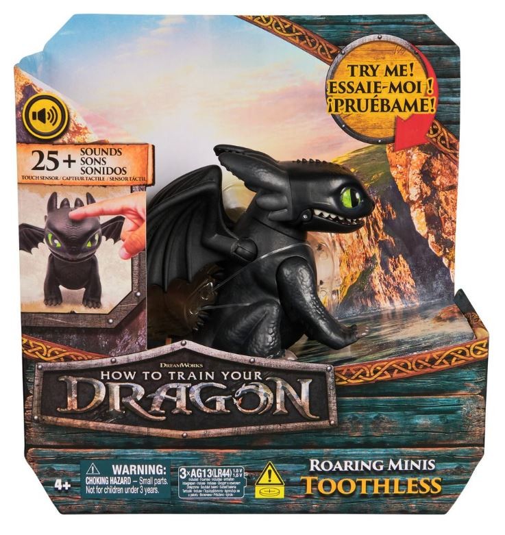 Przenieś przygodę z filmu Jak wytresować smoka do domu z Roaring Minis Toothless. Szczerbatek ożywa i wydaje 25 różnych dźwięków dzięki głaskaniu po głowie. Włącz smoka i obudź go prostym dotknięciem. Wydawane dźwięki urozmaicają zabawę na całego! Zabawka dodatkowo wzmacnia wyobraźnię oraz zdolności motoryczne.