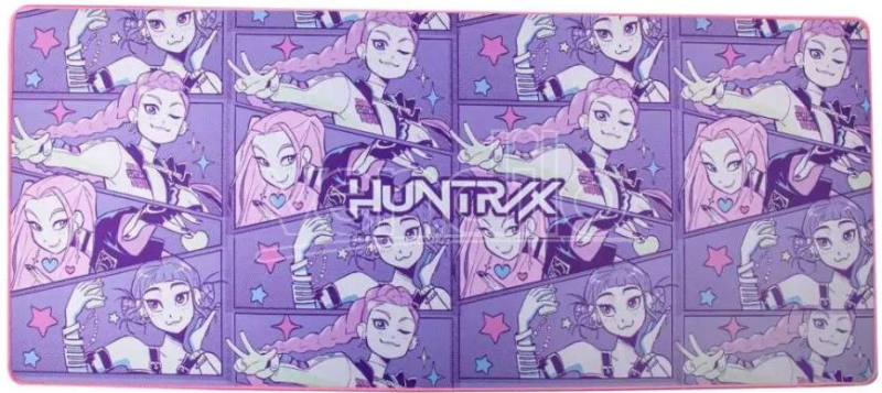 Huntrix to zespół K-POP, który pojawił się w japońskim filmie fantasy KPop Demon Hunters. Członkiniami zespołu są trzy dziewczyny: Rumi, Zoey i Mira, które na co dzień dają fantastyczne występy, a wieczorami walczą z demonami, by bronić swojego miasta. Podkładka na biurko doskonale sprawdzi się dla wszystkich fanek japońskiego girlsbandu - na różowo-fioletowym tle wielkiego miasta znajduje się nadruk trzech bohaterek, które właśnie dają najlepszy występ na scenie! Nadruki na podkładce są wyjątkowo wyraziste i szczegółowe.