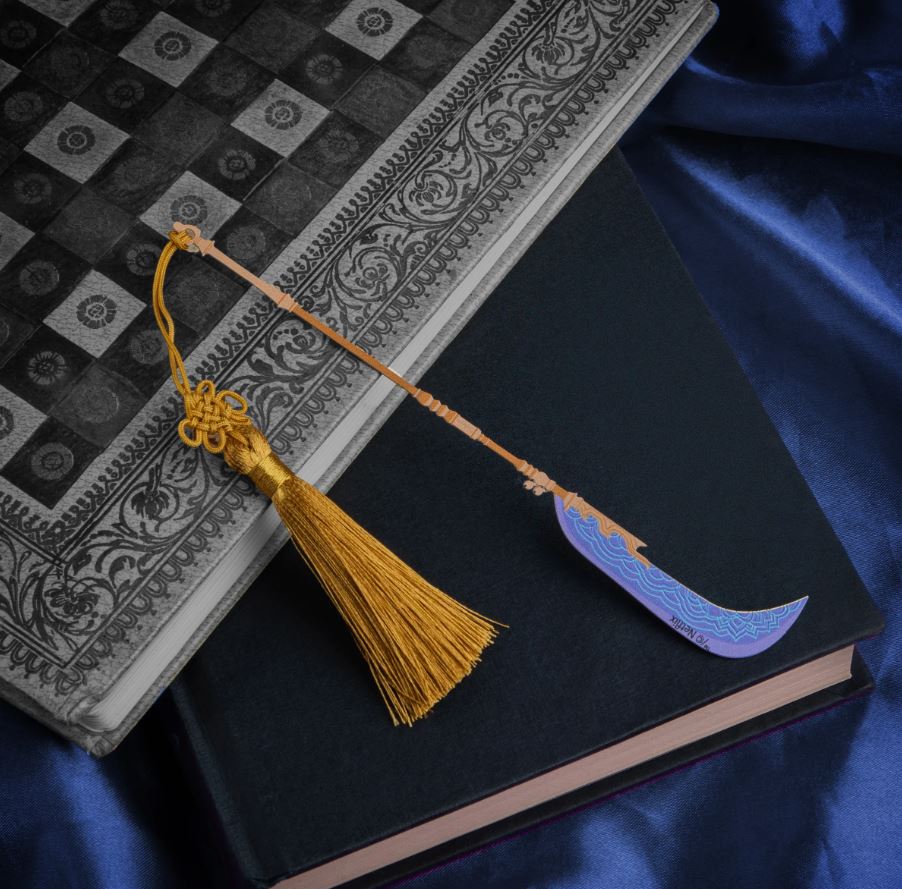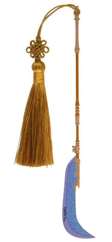 Zakładka do książki w kształcie Gok-do Miry stanie się idealnym podarkiem dla wszystkich fanów czytania książek, którzy również bacznie śledzą losy przyjaciółek z zespołu Huntrix. Gok-do to broń z zakrzywionym ostrzem, która wymaga nie lada sprawności i umiejętności bojowych od każdego, kto jej używa. Zakładka wykonana została z metalu i posiada złoty pompon z ozdobnym węzłem.