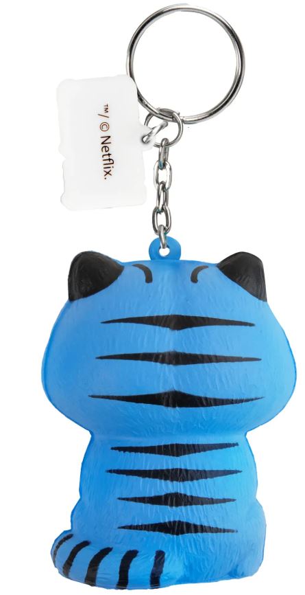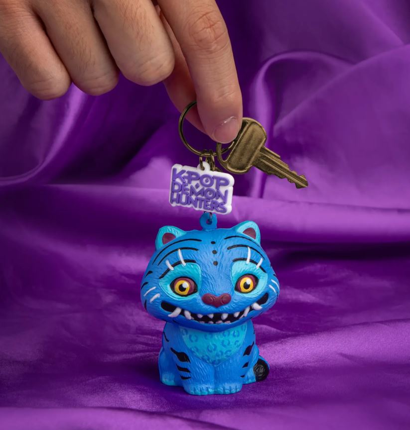 Brelok marki Cinereplicas przedstawia uroczego kota o imieniu Derpy - to jeden z bohaterów japońskiej produkcji. Derpy jest przyjacielem dziewczyn, który choć bywa nieco marudny, to zawsze służy pomocą i można na niego liczyć w każdej sytuacji. Jest niebieskim kotem o wyglądzie tygrysa, o czym świadczą spore zęby, wystające z pyszczka oraz czarne paski na jego ciele. Derpy ma również duże, żółte oczy i cętki na klatce piersiowej. Breloczek wykonany został z miękkiego materiału, dzięki czemu figurkę można ściskać bez końca, a ona zawsze powróci do swojego pierwotnego kształtu. Brelok zawiera również zawieszkę z napisem "K-Pop Demon Hunters".