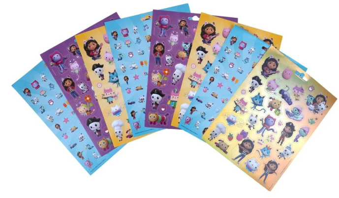 Fantastyczne naklejki, które prezentują bohaterów z animowanego serialu Koci Domek Gabi! Zestaw składa się z 8 kartek, na których znajdują się naklejki w różnej wielkości i z różnymi postaciami.
