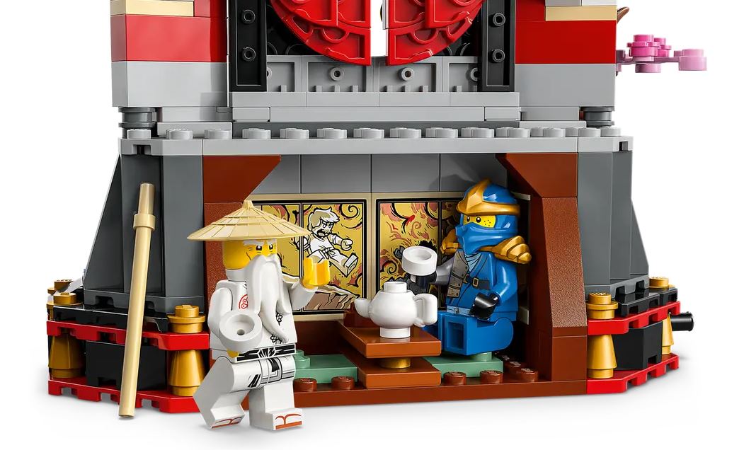 Zestaw z klasztorem Ninja zachwyci każdego fana niezwykłych wojowników. Składa się ze schodów, otwieranej bramy, kamiennej latarni, charakterystycznego drzewa wiśniowego z kwiatami oraz herbaciarnią z tyłu. Dodatkowym urozmaiceniem herbaciarni są naklejki, które przedstawiają słynną bitwę Ninjago. Do zestawu dołączone zostały również mini figurki głównych bohaterów: Kai, Zane, Cole, Jay, Lloyd, Wu i Samurai X. Dodatkowo do zestawu po raz pierwszy została dołączona kolekcjonerska minifigurka Mistrzyni Błyskawic, która umieszczona jest na osobnej podstawce. Wszystkie figurki zawierają akcesoria.