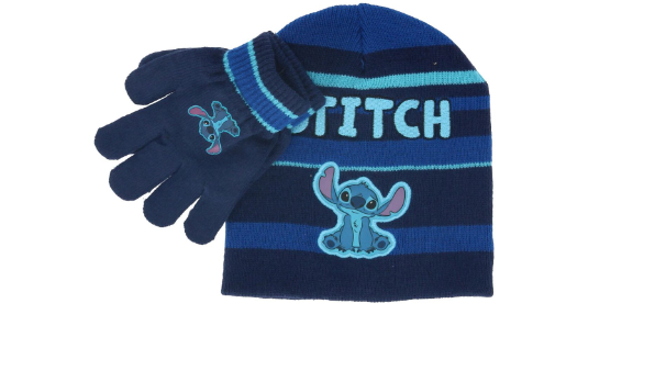 Granatowy komplet z wizerunkiem ukochanego Stitcha będzie wymarzonym uzupełnieniem zimowego outfitu dla wszystkich fanów tego wesołego kosmity. Komplet składa się z ciepłej czapki i pary rękawiczek, został wykonany w 100% z akrylu. Z pewnością doda trochę magii do codziennej stylizacji.