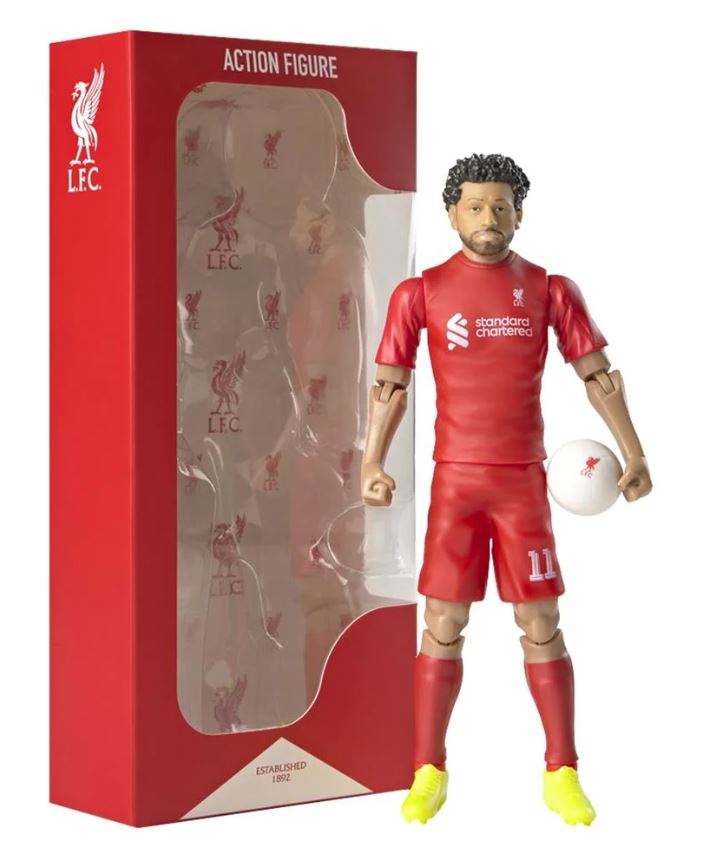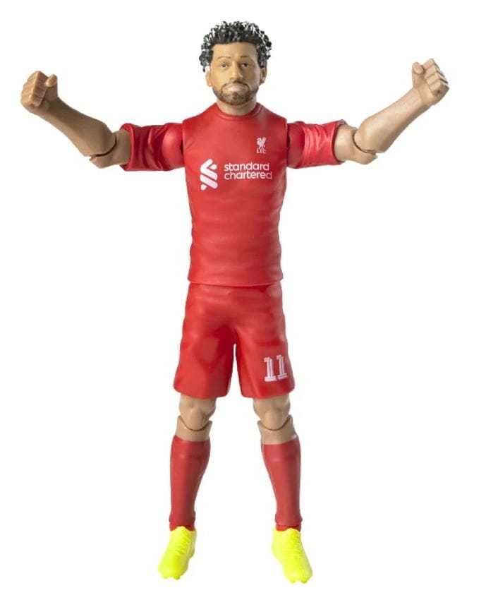 Figurki od marki Banbo Toys będące oficjalną repliką światowej sławy piłkarzy największych kubów na świecie, to nie lada gratka dla wszystkich kibiców piłki nożnej! Figurka napastnika przedstawia Mohameda Salaha w kultowym stroju klubu Liverpool z nr 11 na koszulce. Figurka mierzy 20 cm wysokości, bardzo dokładnie oddaje wygląd zawodnika, posiada wiele punktów artykulacji, dzięki czemu można ją ustawiać w różnych pozycjach. Uzupełnieniem zestawu jest piłka z herbem klubu. Całość zamknięta jest eleganckim pudełku z okienkiem.