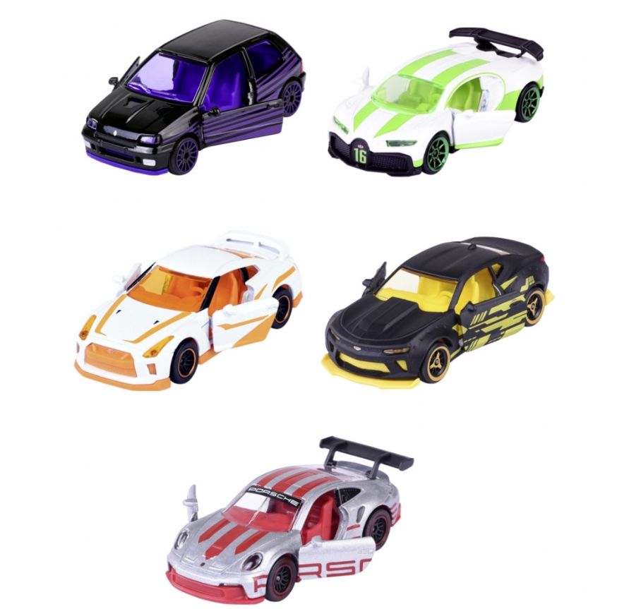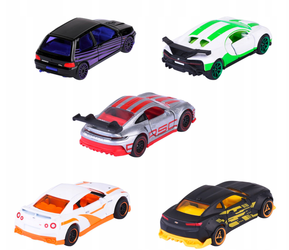 Zestaw Majorette Limited Edition z serii 10 to prawdziwa gratka dla miłośników samochodów i kolekcjonerów w każdym wieku! Ten limitowany komplet zawiera 5 starannie zaprojektowanych pojazdów z unikalnymi grafikami, które wyróżniają się nowoczesnym designem oraz wysoką jakością wykonania. W skład zestawu wchodzą: Renault Clio 16S, Porsche 911 GT3 Cup, Nissan GT-R, Bugatti Chiron Pur Sport, Chevrolet Camaro.