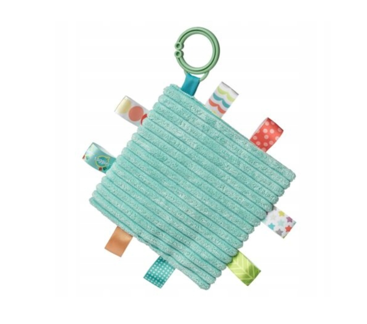 Szeleszcząca szmatka z uroczym smokiem to idealna zabawka sensoryczna dla niemowląt. Miękki materiał, delikatne kolory oraz haftowany motyw smoka tworzą przyjaznego towarzysza codziennych zabaw. Wystające kolorowe tasiemki, satynowe metki, szeleszczące wnętrze i wszyty piszczek zachęcają maluszka do chwytania, ugniatania i gryzienia, stymulując zmysły dotyku, wzroku i słuchu. Różnorodne faktury materiałów wspierają rozwój sensoryczny dziecka. Praktyczna zawieszka pozwala łatwo przypiąć szmatkę do wózka lub fotelika, dzięki czemu świetnie sprawdzi się także w podróży.