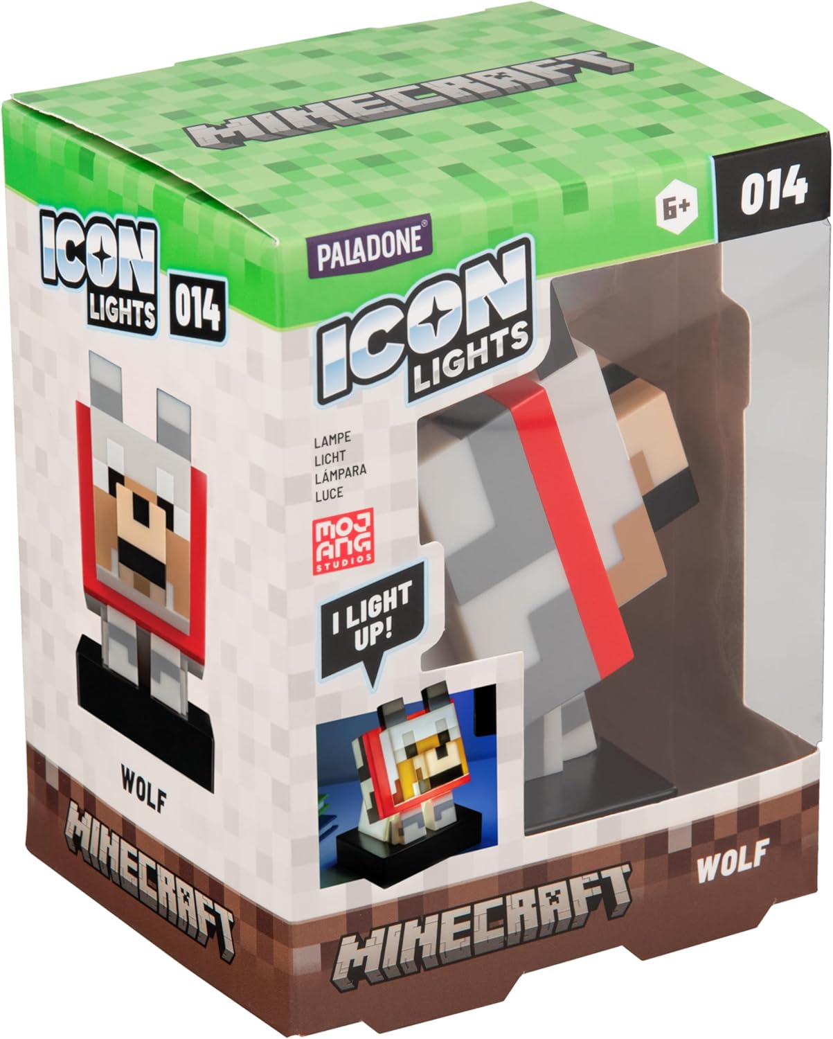 Figurka-lampka Wilk to nie lada gratka dla wszystkich fanów gry Minecraft, zwłaszcza że wilki to bardzo przyjazne i towarzyskie moby. Oswojony wilk stanie się najlepszym obrońcą, który odeprze atak każdego wroga. Lampka marki Paladone wykonana została z dbałością o wszystkie detale i przedstawia wilka w klasycznej, wirtualnej, nieco pixelowej odsłonie. Mierzy 11 cm, jednak po aktywowaniu modułu świetlnego pięknie się rozświetla, dając ciepłe światło.