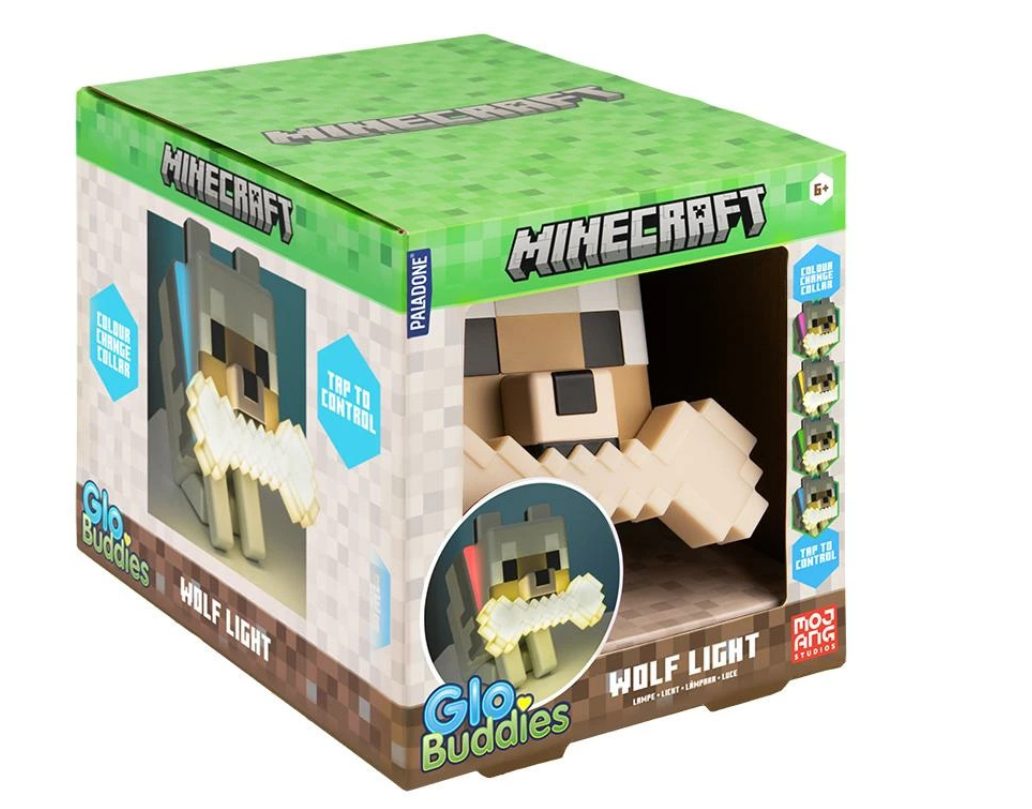Lampka nocna Wilk z gry Minecraft ma ok. 14 cm wysokości i jest dedykowana dzieciom powyżej 6. roku życia.