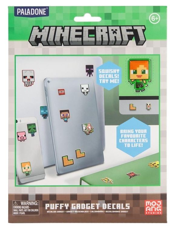 Niech pikselowany świat Minecrafta przejmie kontrolę nad Twoim telefonem, laptopem i konsolą do gier dzięki naklejkom Minecraft Puffy Gadget. Zestaw naklejek z motywem Minecraft zachwyci każdego fana tej serii. Produkt składa się z 60 miękkich naklejek winylowych z wykończeniem 3D.