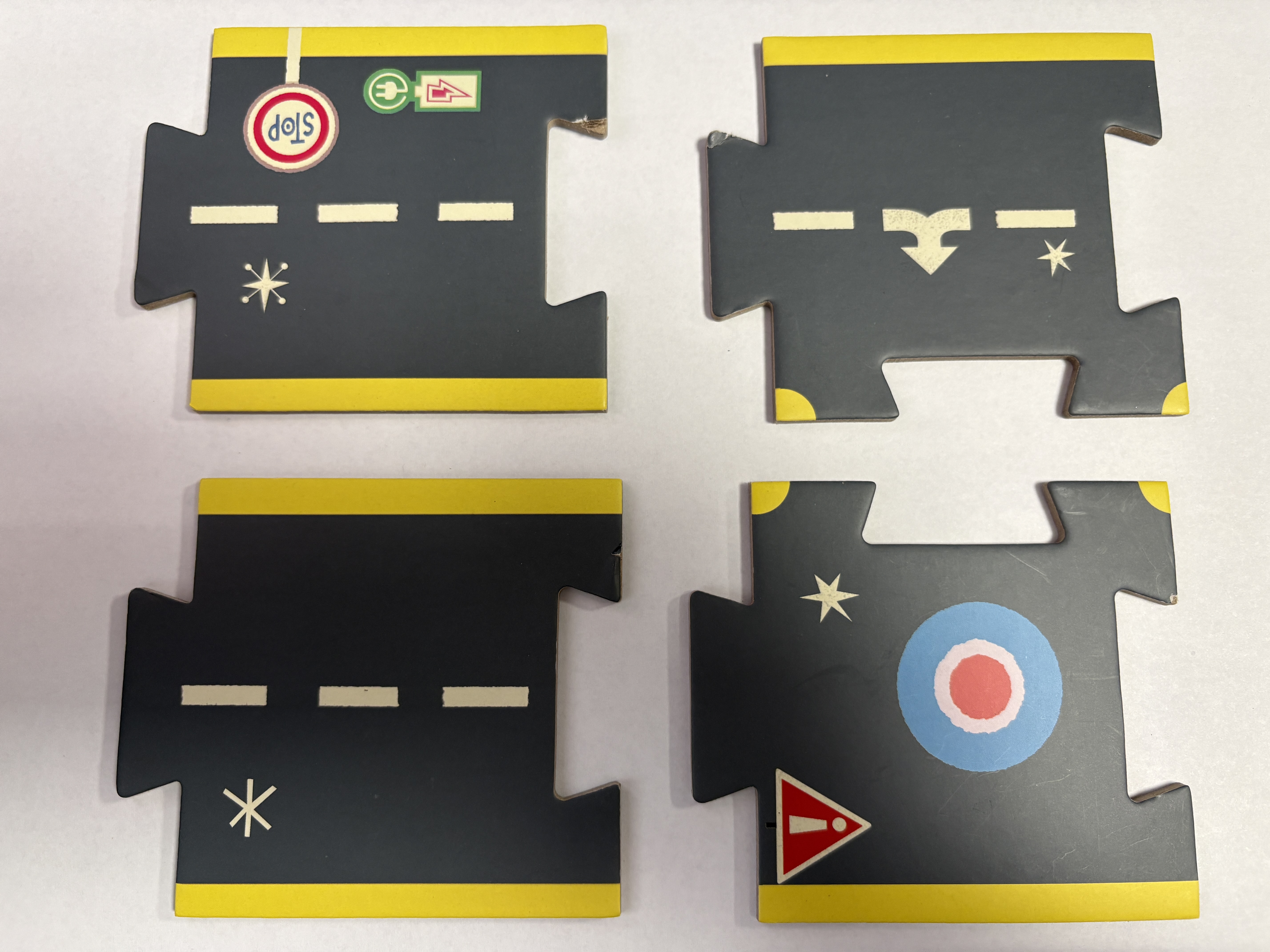 Puzzle ULICE to komplet 26 części, z których można tworzyć rozmaite trasy przypominające miasteczko. Na opakowaniu zaprezentowano kilka przykładowych układów, jednak wariantów zabawy jest znacznie więcej. Część elementów pełni rolę punktów usługowych, takich jak wulkanizacja, warsztat samochodowy czy stacja ładowania aut elektrycznych.