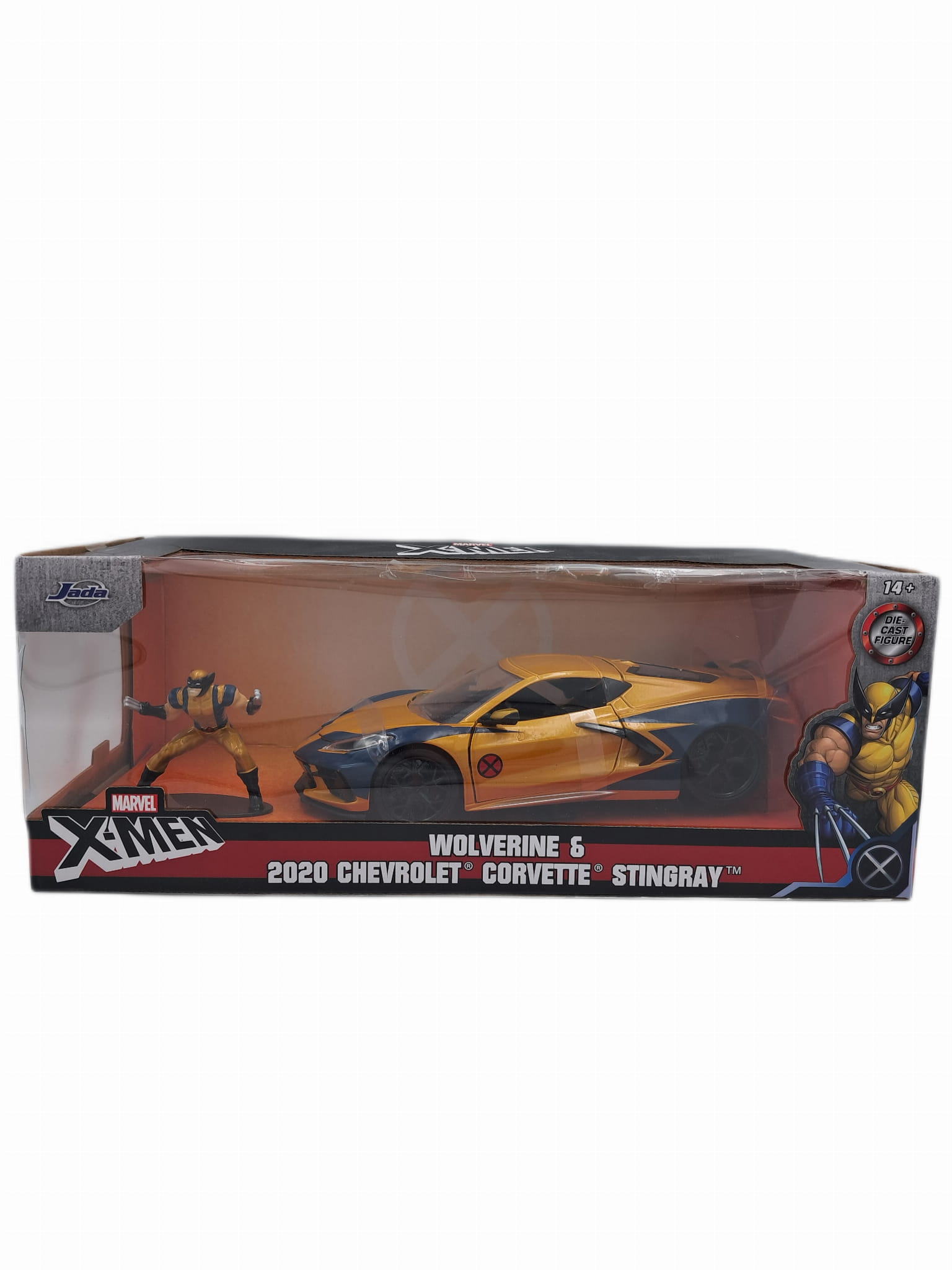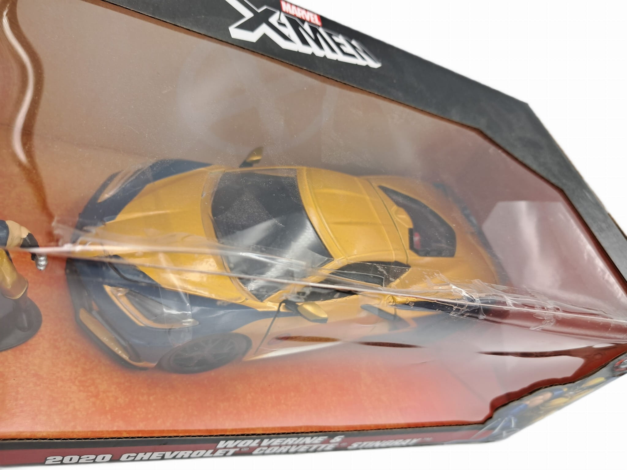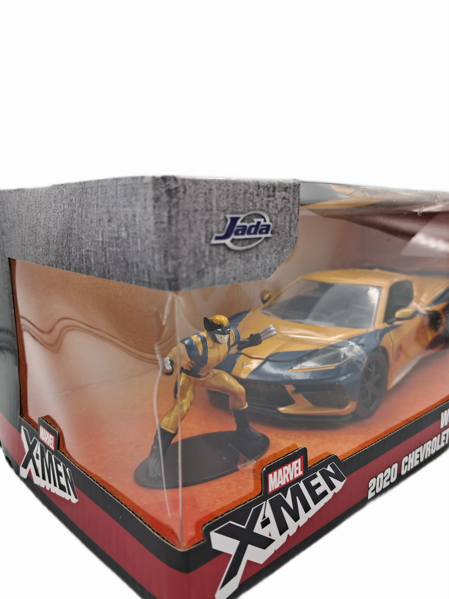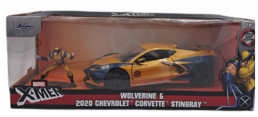 Model pojazdu marki Jada przedstawia 2020 Chevrolet Corvette Stingray w złoto-czarnym. Autko jest bardzo specyficzne i od razu kojarzy się z X-Men'am który został dołączony jako figurka, ma ona wysokość 7 cm, a samo auto mierzy około 20 cm.