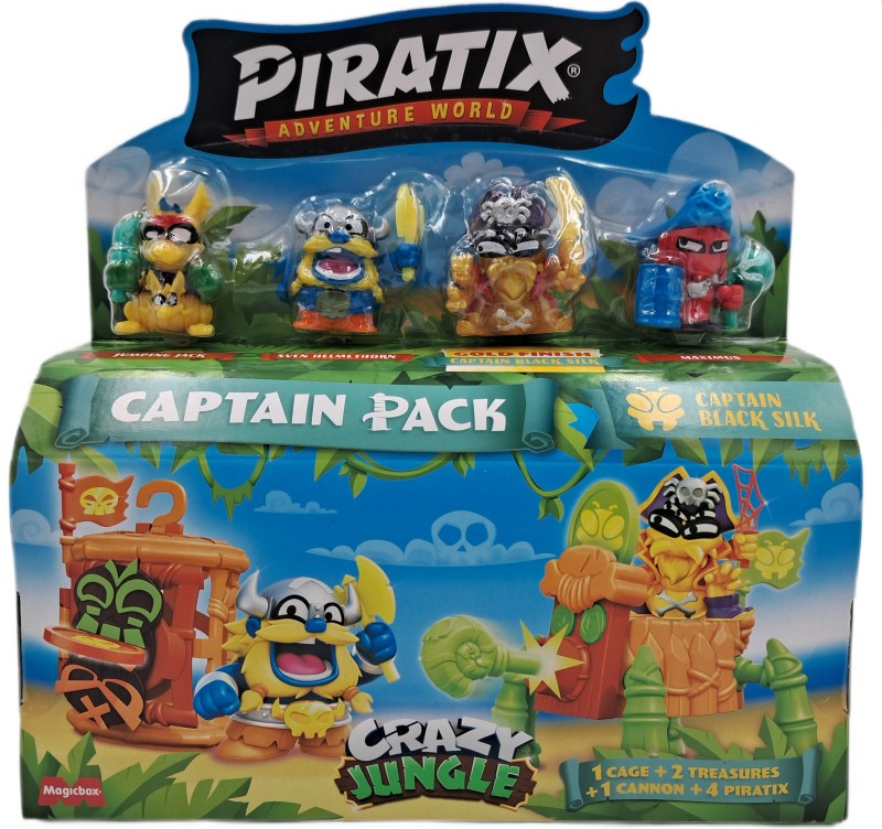 Ahoj! Przeżyj przygodę w towarzystwie Piratixów na Jungle Island dzięki nowemu zestawowi Captain Pack. Zawiera on klatkę Jungle Cage, w której można zamknąć (a potem uwolnić) Piratixów dzięki „magicznemu zamkowi”, oraz armatę Jungle Cannon wraz z pociskiem i ekskluzywną monetą, którą znajdziesz tylko tutaj! Odkryj złowrogi charakter tych potężnych czteronożnych armat z maskami tiki: użyj monety Piratix i precyzyjnie wystrzel pocisk!