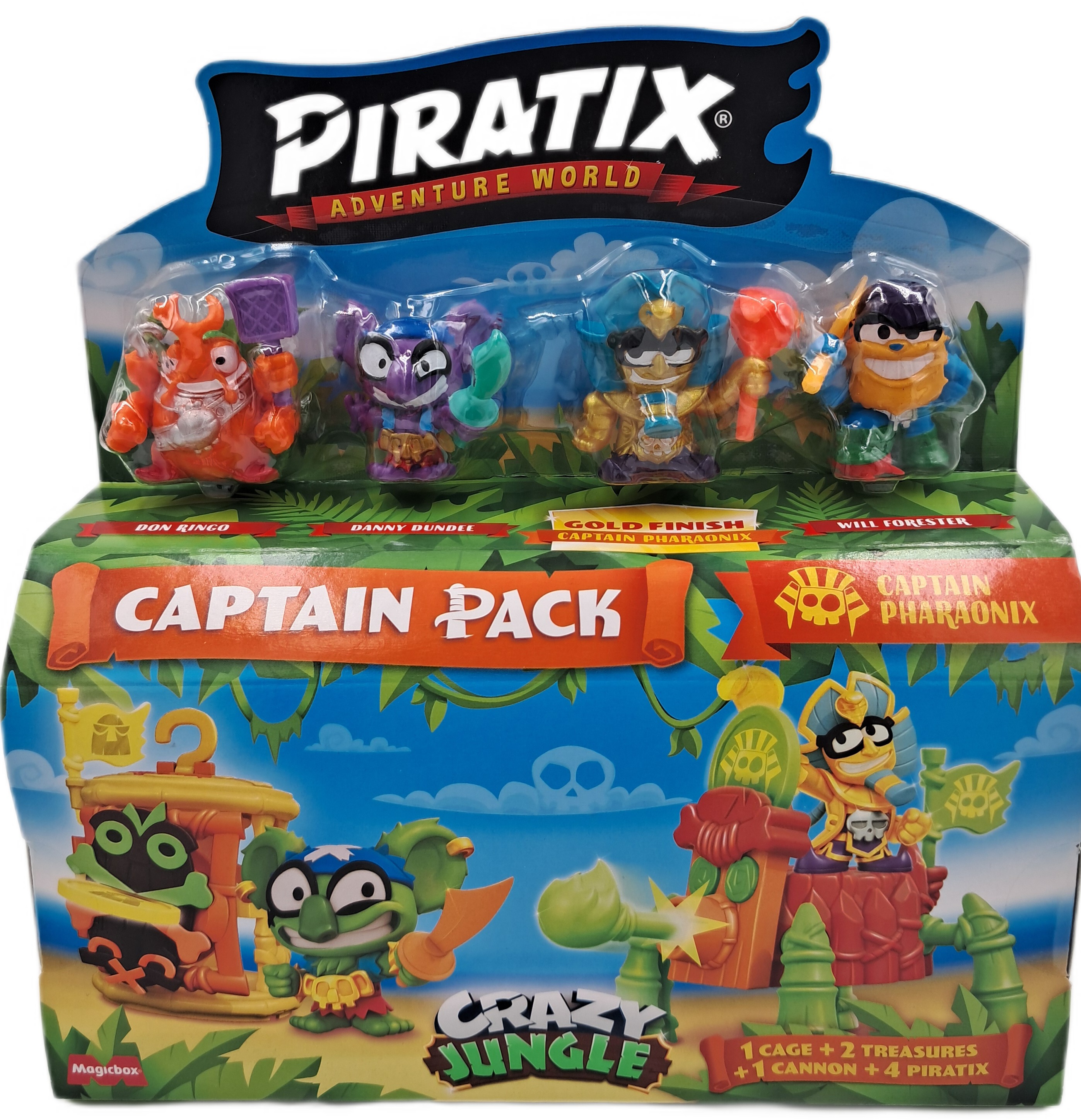Ahoj! Przeżyj przygodę w towarzystwie Piratixów na Jungle Island dzięki nowemu zestawowi Captain Pack. Zawiera on klatkę Jungle Cage, w której można zamknąć (a potem uwolnić) Piratixów dzięki „magicznemu zamkowi”, oraz armatę Jungle Cannon wraz z pociskiem i ekskluzywną monetą, którą znajdziesz tylko tutaj! Odkryj złowrogi charakter tych potężnych czteronożnych armat z maskami tiki: użyj monety Piratix i precyzyjnie wystrzel pocisk!