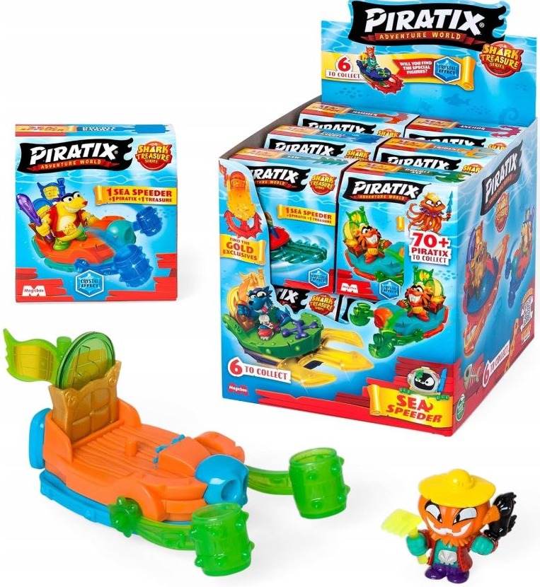 Poznaj świat Piratix! Nowe Piratix przybywają na Sea Speeder, najszybszych jednomiejscowych łodziach po tej stronie Wyspy Rekinów. Do zebrania jest 6 wzorów w wielu kolorach. Każdy z nich zawiera ekskluzywny skarb i flagę, obie z efektem kryształu.