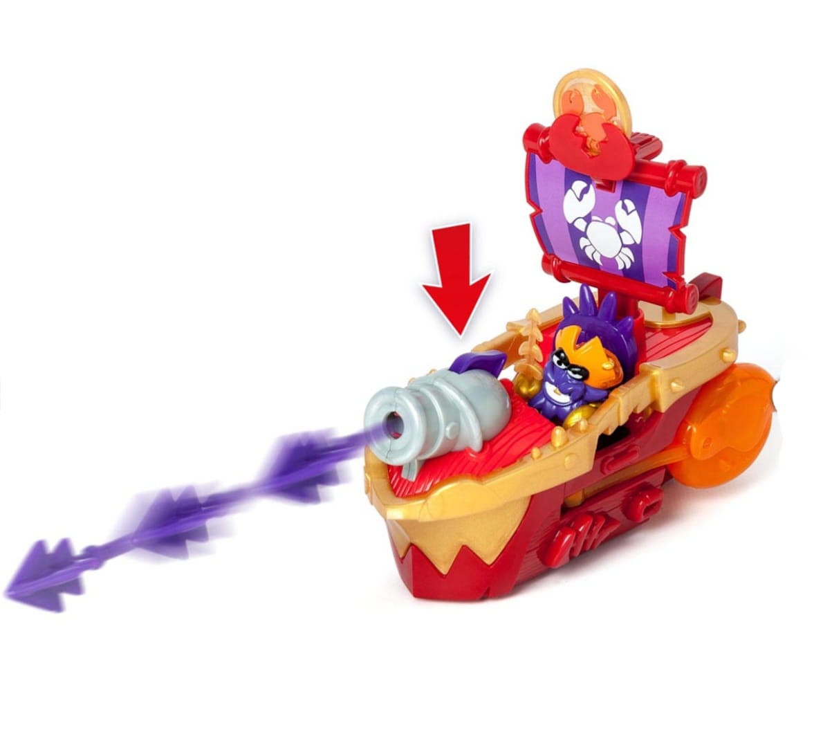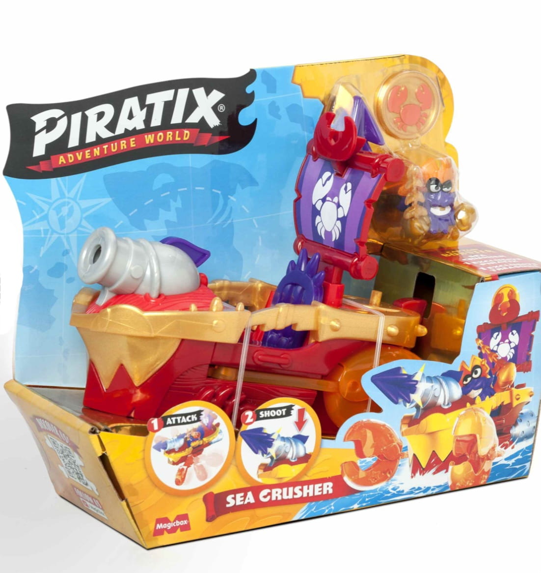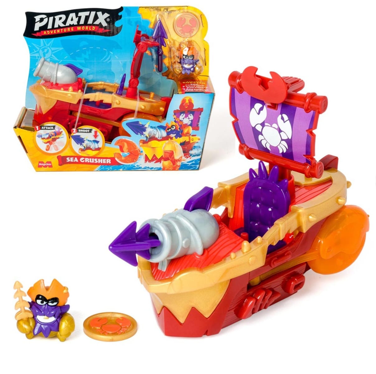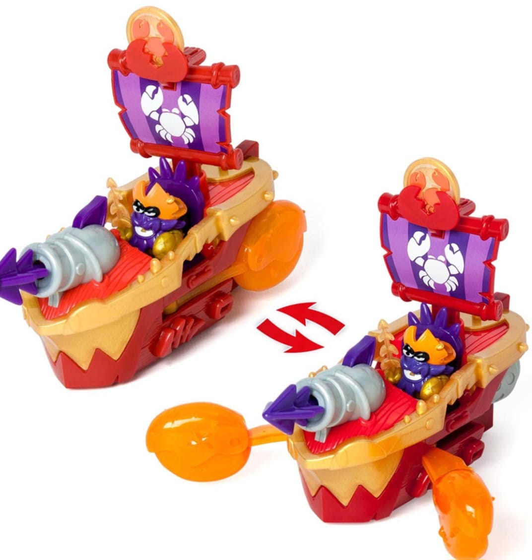 Zestaw przedstawia piracki statek w kształcie kraba z ekskluzywnym kapitanem Piratix o imieniu Lobster. Użyj należącego do niego skarbu- monety, aby poruszać sczypcami i strzelać z armaty!