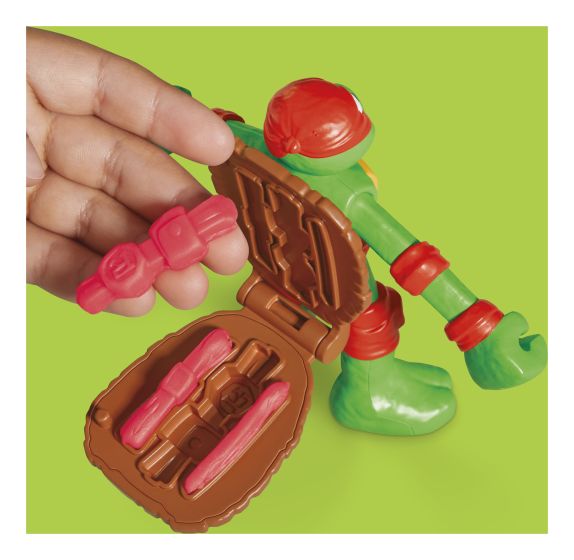 W zestawie znajdziesz figurki ulubionych bohaterów – Raphaela, Donatello, Michelangelo i Leonardo – każda o wysokości 10 cm z ruchomymi, elastycznymi ramionami i nogami. Ukryte formy w ich wnętrzu umożliwiają tworzenie własnych, unikalnych modeli i akcesoriów. Dołączone narzędzia pozwalają na jeszcze więcej kreatywnych możliwości i odgrywania epickich treningowych bitew. Zestaw zawiera również 8 tubek z kolorową masą.
