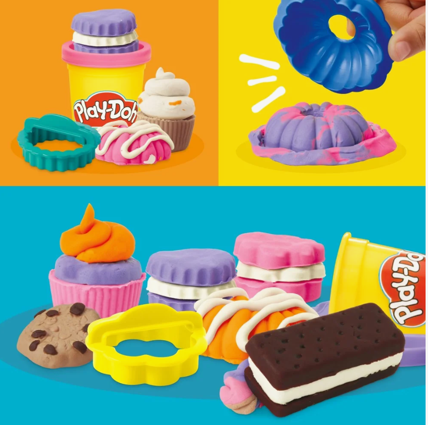 W zabawie ciastoliną Play-Doh ograniczeniem jest tylko wyobraźnia. W zestawie Mała Piekarniaznajdują się 4 foremki na ciastko, 2 foremki na babeczkę oraz 6 kolorowych tubek z ciastoliną. Maluchy mogą tworzyć przepysznie wyglądające muffinki, ciasteczka i babeczki. Miękka i łatwa w formowaniu masa zapewnia godziny twórczej zabawy.