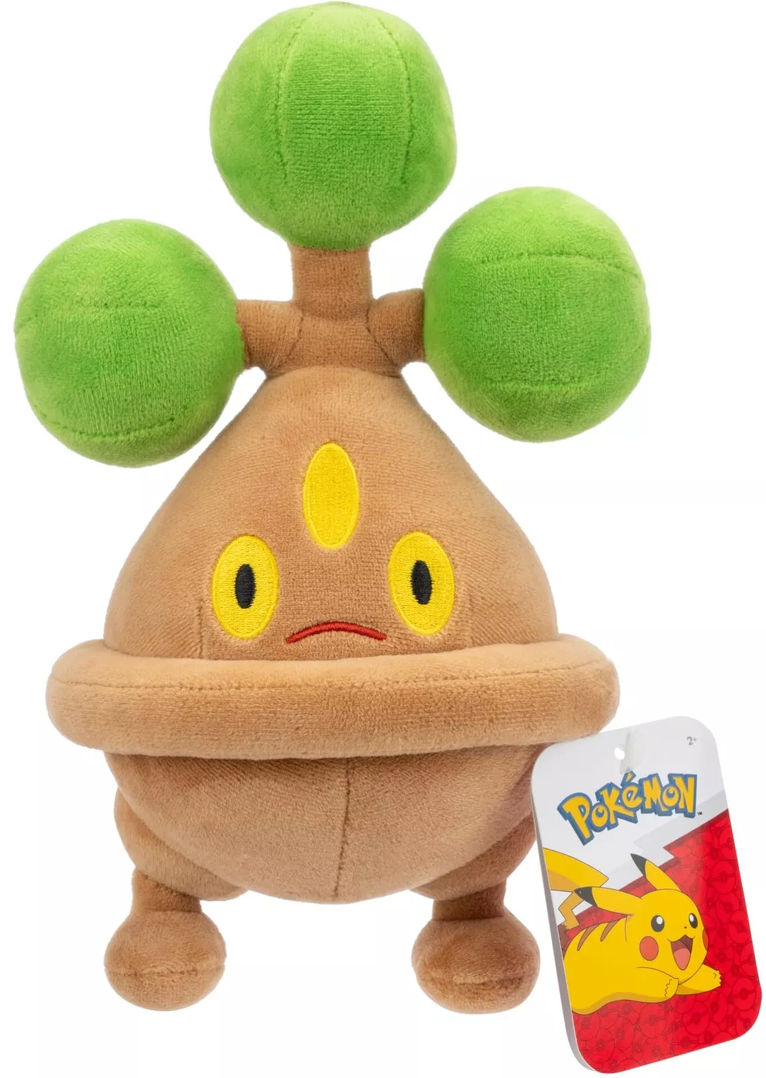 Maskotka Bonsly ma 20 cm wysokości. Jest miękka i pluszowa. Ma brązowy kolor oraz zielone kulki ponad głową. Pluszak wiernie odwzorowuje postać pokemona.