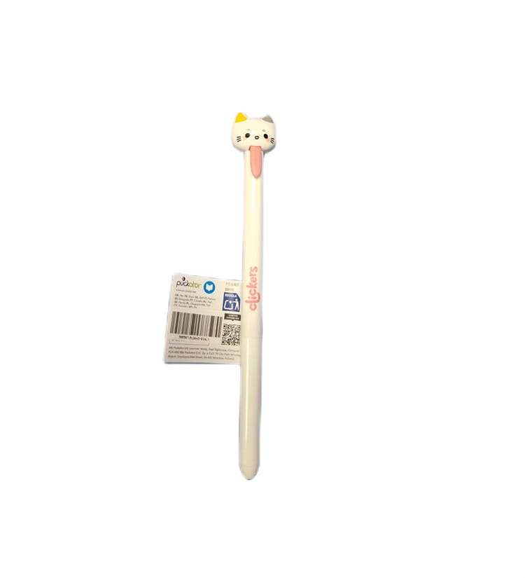 Zabawny długopis marki Puckator. Długopis z białym kotkiem jest automatyczny, aby go włączyć należy pociągnąć za różowy języczek kotka. Długopis posiada czarny tusz. Przeznaczony jest dla dzieci powyżej 3. roku życia.