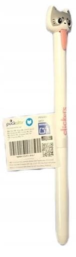 Zabawny długopis marki Puckator. Długopis z białym kotkiem jest automatyczny, aby go włączyć należy pociągnąć za różowy języczek kotka. Długopis posiada czarny tusz. Przeznaczony jest dla dzieci powyżej 3. roku życia.