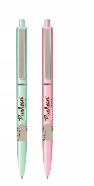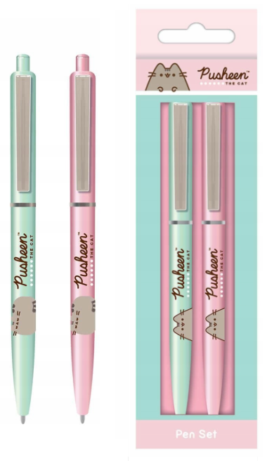 Pusheen to uroczy kotek, który stał się popularny na całym świecie! Przedstawiany jest zazwyczaj jako szary, puszysty kociak. Zestaw długopisów kulkowych z podobizną Pusheen stanie się idealnym akcesorium do tworzenia różnych notatek, nauki pisania bądź innych, pisarskich aktywności! Metalowa konstrukcja gwarantuje długotrwałość i wytrzymałość, a także komfort i precyzję pisania. Zestaw zapakowany jest w estetyczne pudełko, co czyni go doskonałym pomysłem na prezent.