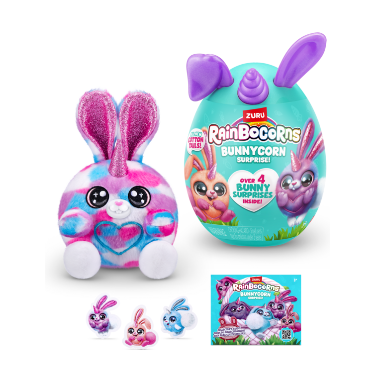 Wkrocz do magicznego świata RainBocorns i odkryj niezwykłe stworzonko Bunnycorn – urocze połączenie pluszowego królika i jednorożca! Rozbij kolorowe jajko i odkryj 4 urocze niespodzianki!