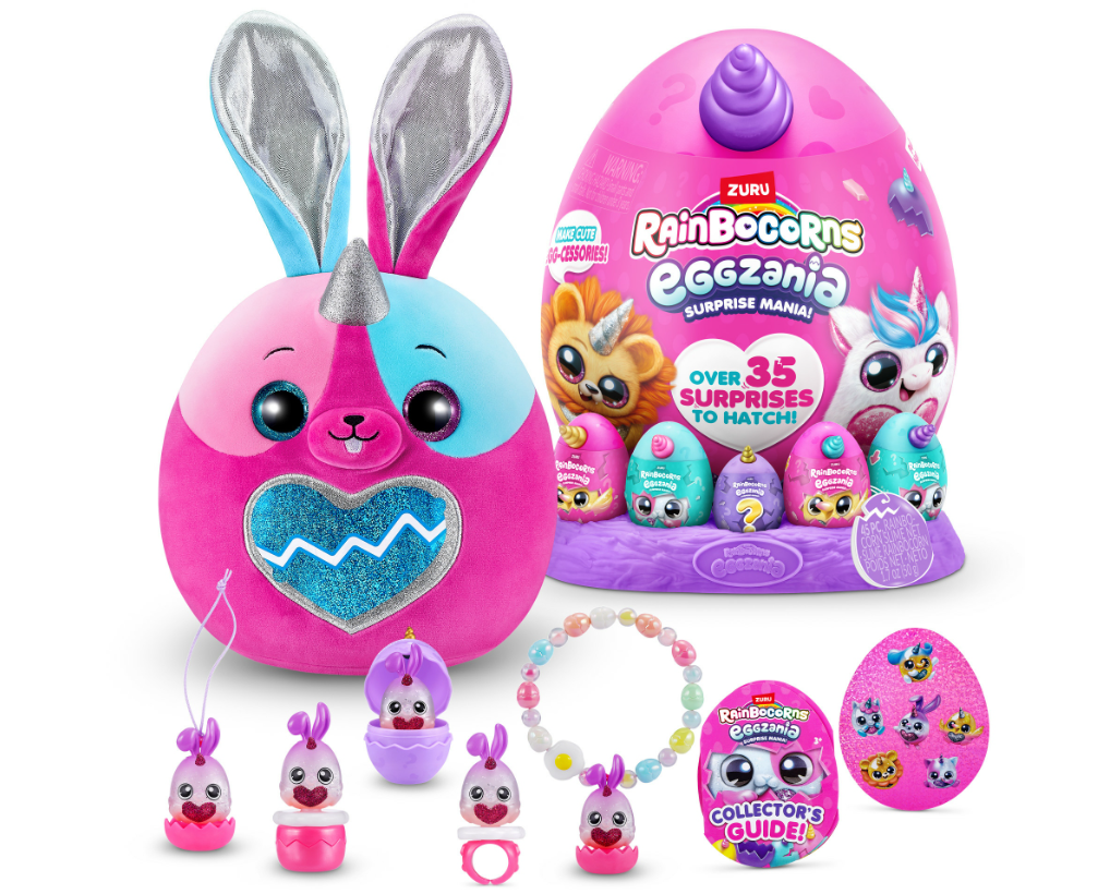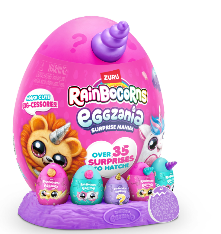 Wkrocz do magicznego świata RainBocorns i odkryj niezwykłe stworzonko Eggzania. Rozbij kolorowe jajko-niespodziankę i poznaj jedną z pluszowych maskotek oraz ponad 35 czarujących niespodzianek. W środku czekają m.in. mini figurka dopasowana do dużej maskotki, stempelek, slime, biżuteria DIY, naklejki oraz mnóstwo akcesoriów.