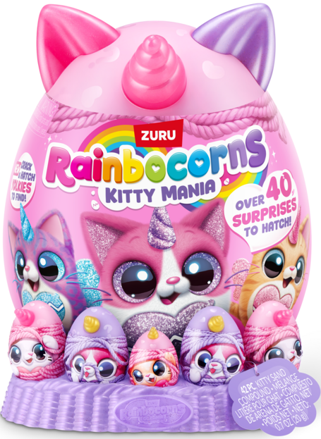 Wkrocz do magicznego świata RainBocorns i odkryj jajko pełne niespodzianek. Wykluj nowego, najsłodszego, bardzo miękkiego pluszowego kotka oraz ponad 10 niespodzianek, które przeniosą Cię w krainę Rainboville pełną magii i radości. W środku oprócz maskotki znaleźć możesz między innymi jajka Yolkie, zabawkowy tuńczyk do zjedzenia przez Twojego kotka, bransoletka, naklejki, slime i wiele więcej.
