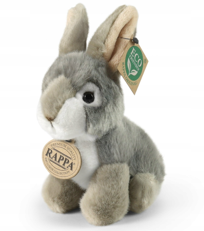 Maskotka czeskiej firmy Rappa przedstawia uroczego Króliczka, który wygląda dokładnie jak prawdziwe zwierzątko! Królik został bardzo szczegółowo dopracowany, mierzy 16 cm wysokości i w całości pokryty został miękkim pluszem w biało-szarym kolorze.