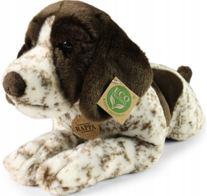 Maskotka czeskiej firmy Rappa przedstawia uroczego psa rasy wyżeł niemiecki, który wygląda dokładnie jak prawdziwe zwierzątko! Pluszak został bardzo szczegółowo dopracowany, piesek przedstawiony jest w pozycji leżącej, mierzy 43 cm długości i w całości pokryty został miękkim pluszem.