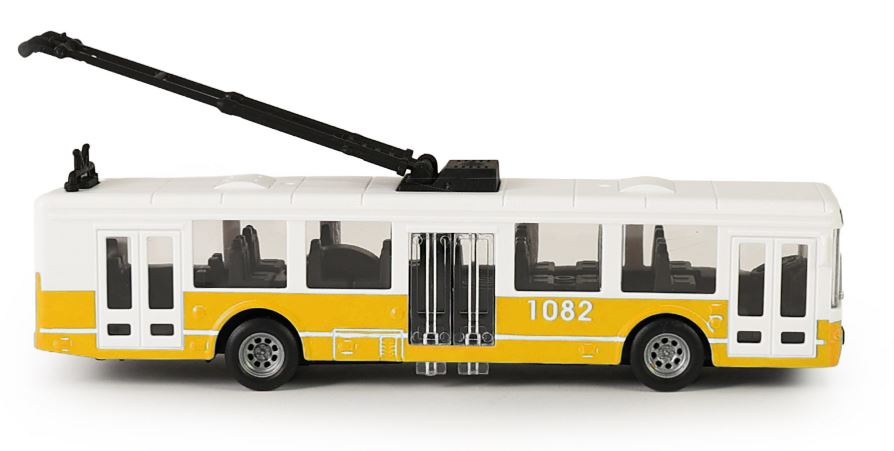 Model pojazdu marki Rappa stanowi świetną replikę o długości 16 cm x 3,5 cm x 4 cm. Trolejbus jest biało - żółtego koloru, posiada otwierane środkowe drzwi oraz porusza się po delikatnym wprawieniu w ruch.