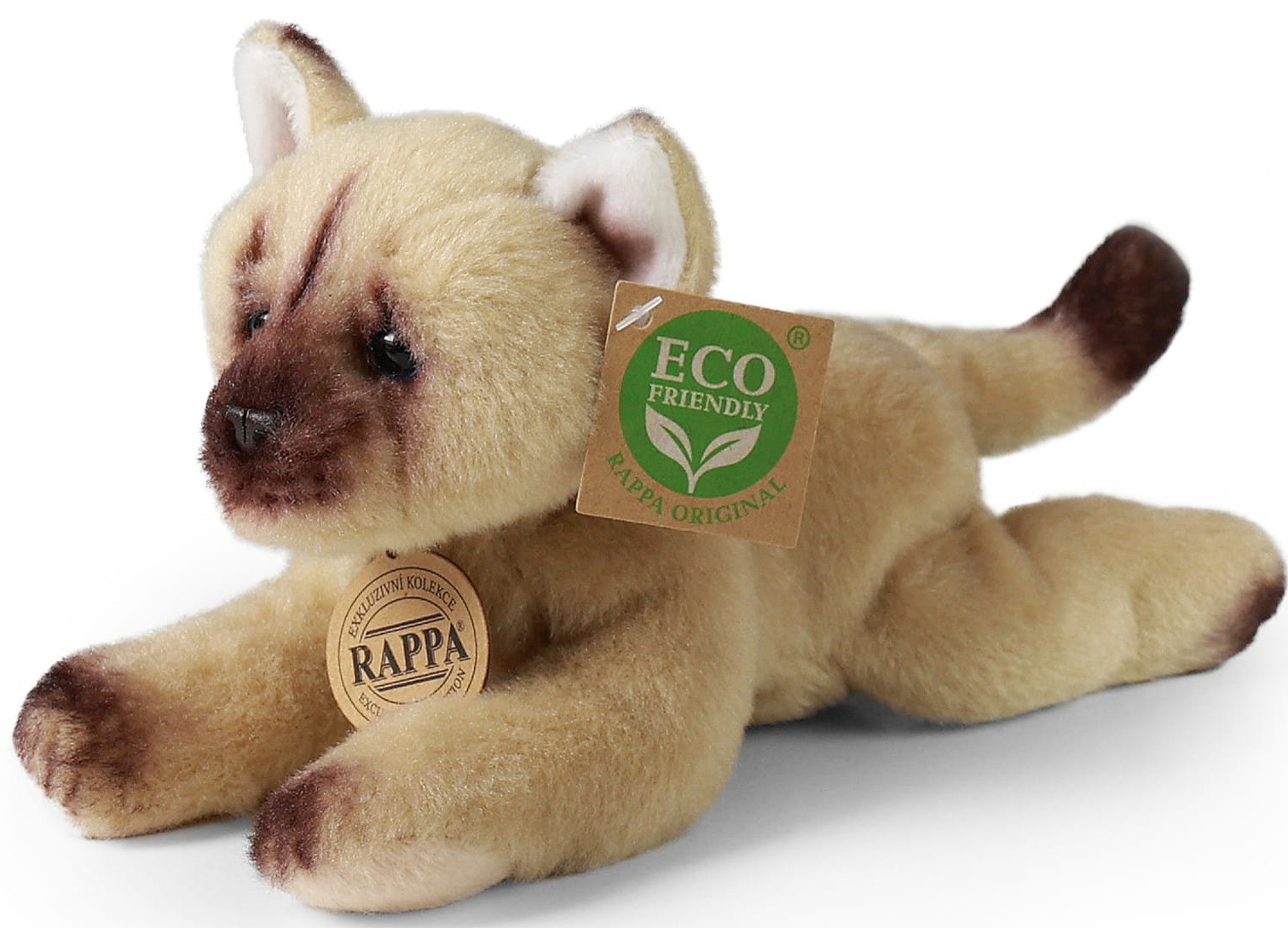 Maskotka czeskiej firmy Rappa przedstawia uroczego Kot brązowego z ciemnym pyszczkiem, który wygląda dokładnie jak prawdziwe zwierzątko! Pluszak został bardzo szczegółowo dopracowany, mierzy 18 cm długości i w całości pokryty został miękkim pluszem.
