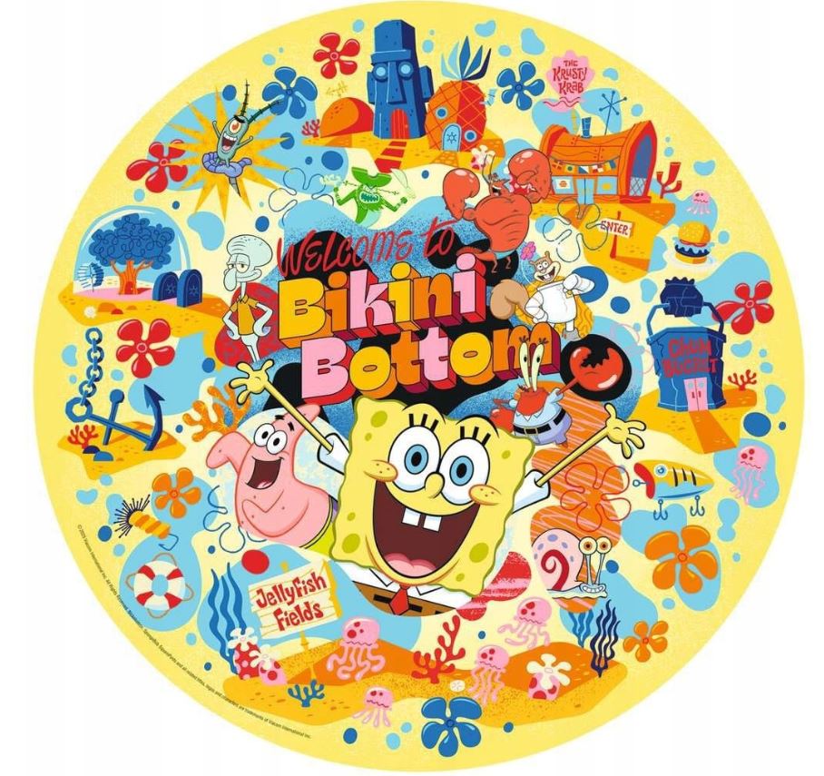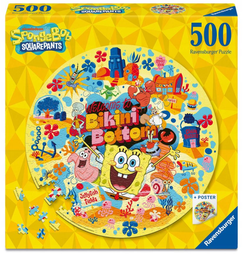 Zestaw puzzli Ravensburger składa się łącznie z 500 elementów, a gotowa układanka ma okrągły kształt. W centralnej części puzzli widoczny jest napis "Welcome to Bikini Bottom" ("Witamy w Bikini Dolnym"). Ilustracja jest realistyczna, a każdy jej element ma żywe i wyraziste kolory. Puzzle dedykowane są dzieciom powyżej 10. roku życia.