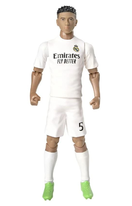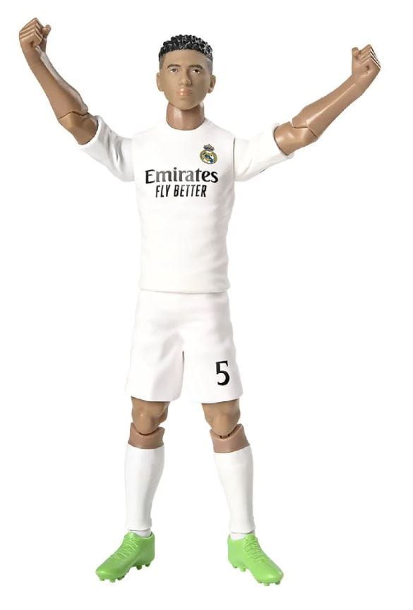 Figurki od marki Banbo Toys będące oficjalną repliką światowej sławy piłkarzy największych kubów na świecie, to nie lada gratka dla wszystkich kibiców piłki nożnej! Figurka przedstawia Jude Bellingham w kultowym stroju klubu Real Madryt z nr 5 na koszulce. Figurka mierzy 20 cm wysokości, bardzo dokładnie oddaje wygląd zawodnika, posiada wiele punktów artykulacji, dzięki czemu można ją ustawiać w różnych pozycjach. Uzupełnieniem zestawu jest piłka z herbem klubu. Całość zamknięta jest eleganckim pudełku z okienkiem.