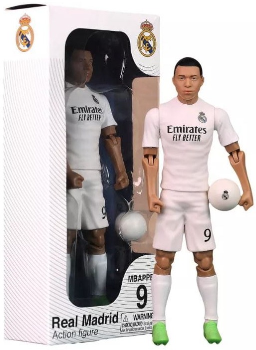 Figurki od marki Banbo Toys będące oficjalną repliką światowej sławy piłkarzy największych kubów na świecie, to nie lada gratka dla wszystkich kibiców piłki nożnej! Figurka napastnika drużyny Real Madrty przedstawia Kylian'a Mbappe w kultowym klubowym stroju z nr 9 na koszulce. Figurka mierzy 20 cm wysokości, bardzo dokładnie oddaje wygląd zawodnika, posiada wiele punktów artykulacji, dzięki czemu można ją ustawiać w różnych pozycjach. Uzupełnieniem zestawu jest piłka z herbem klubu. Całość zamknięta jest eleganckim pudełku z okienkiem.