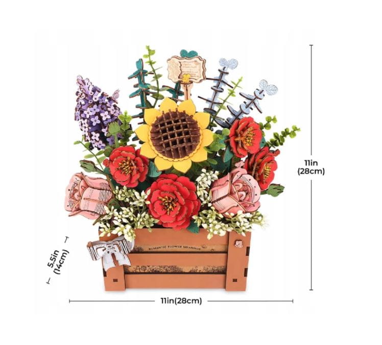 Model 3D do złożenia z serii Robotime przedstawia Drewnianą skrzynię na kwiaty. Można zbudować go z małych, drewnianych elementów, z których każdy został wycięty za pomocą precyzyjnego lasera. Wystarczy odrobina precyzji i możecie zachwycać się pięknymi kwiatami znajdującymi się w drewnianej skrzyni. Model przedstawia kwiaty: słonecznik, eukaliptus, różę, camellię oraz lilak. Złożony model posiada wymiary: 28 cm x 14 cm x 28 cm.
